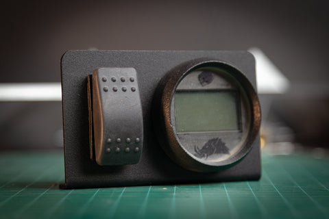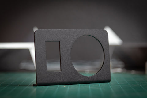 Don't have extra room to add a your Gauge+Rocker? we got you! this little guy can mount almost anywhere on the dash with a flat surface. Mounts with 2 simple screws and measuring in at 4.48x2.68 inches is super small and fits just about anywhere! Plus an extra slot for a rocker switch. Mounting hole is 2.12 inches. Mounting hardware is included for bracket. Made from the same grade and quality of our consoles, and of course a flush fit for the gauges. Powdered with the same Tough coating as our panels. Don't forget to send us pictures were you mounted yours!