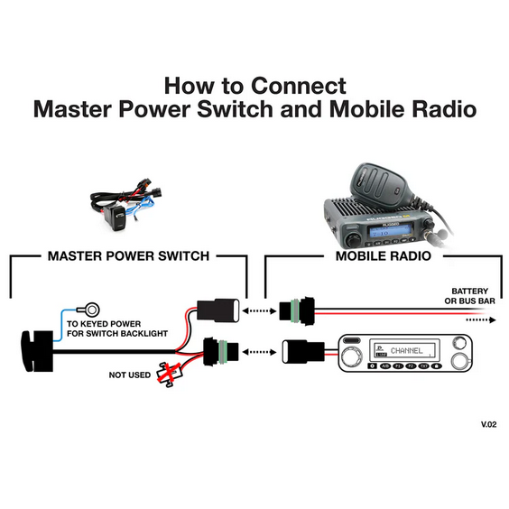 Simplify your set-up with our PH-MS-WP communications rocker switch. This solution eliminates extra cables with the included 26" intercom and radio install harness with pre-wired rocker switch. The power cord allows you to plug both your radio and intercom into the same power source and easily control them with a rocker switch.